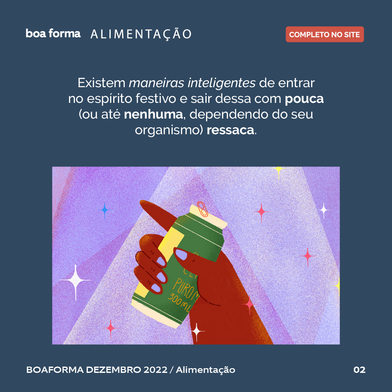 prevention tips for a hangover-free holiday season Boa Forma Magazine • December 2022 Text: Larissa Serpa Illustrations: Anamaria Sabino